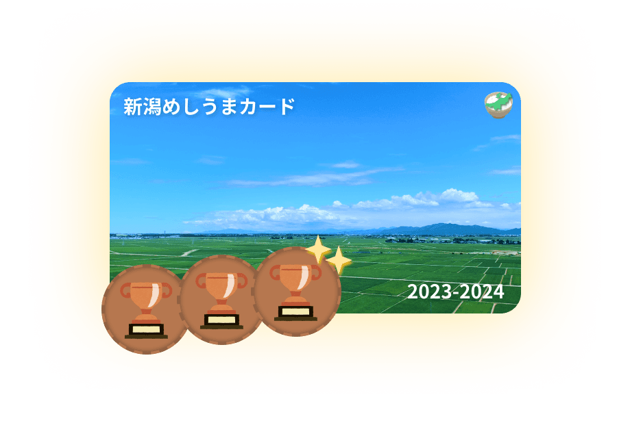 レビューすると、自分の『新潟めしうまカード』がどんどん育っていきます!色んな食材、色んな地域でレビューすると、さらにコインもたくさんもらえるよ!